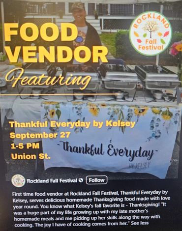 Come get some food at Thankful Everyday at the 4th annual Rockland Fall Festival! The community will enjoy live music, food and beverage ven...