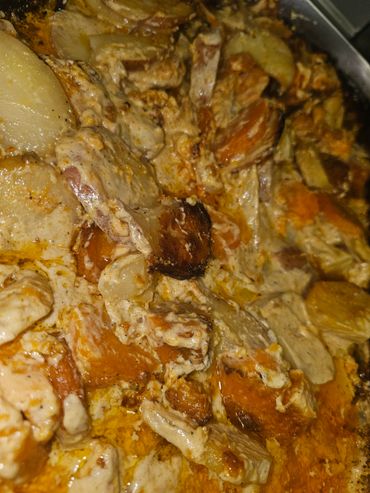 Made with Russet, Red & Sweet potatoes in a heavy cream goat cheese sauce